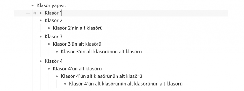 - Temel birkaç (iş, kişisel vb başlık) dışında klasör kullanmıyorum. Notlarımın hepsi yatay düzlemde hiyerarşisi olmayan bir yapıda ve tek bir seviyede yaşıyor.