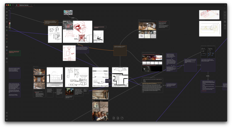 Bir örnek daha verelim: Aşağıda ise Çağlar Ongan isimli Obsidian kullanıcısı Türk bir mimarın üzerinde çalışmakta olduğu proje için hazırladığı Kanvas'ı bulabilirsiniz.